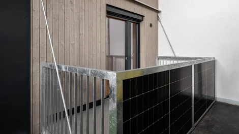 Zwei integrierte Balkon‑PV‑Module liefern jeder Wohnung sauberen Solarstrom direkt vor Ort – für mehr Unabhängigkeit und geringere Energiekosten. Die großflächige Dach-PV Anlage ergänzt das System und steigert die Gesamtenergieeffizienz des Gebäudes.